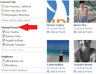 Click on this link to see the the feature we’re talking about here: Facebook has added a mutual friend option to the find friends feature.